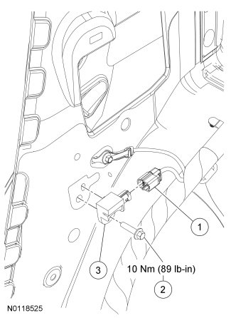 5. WARNING: Always tighten the fasteners of the restraints control module (RCM) and impact sensor (if equipped) to the specified torque. Failure to do so may result in incorrect restraint system operation, which increases the risk of personal injury or death in a crash.