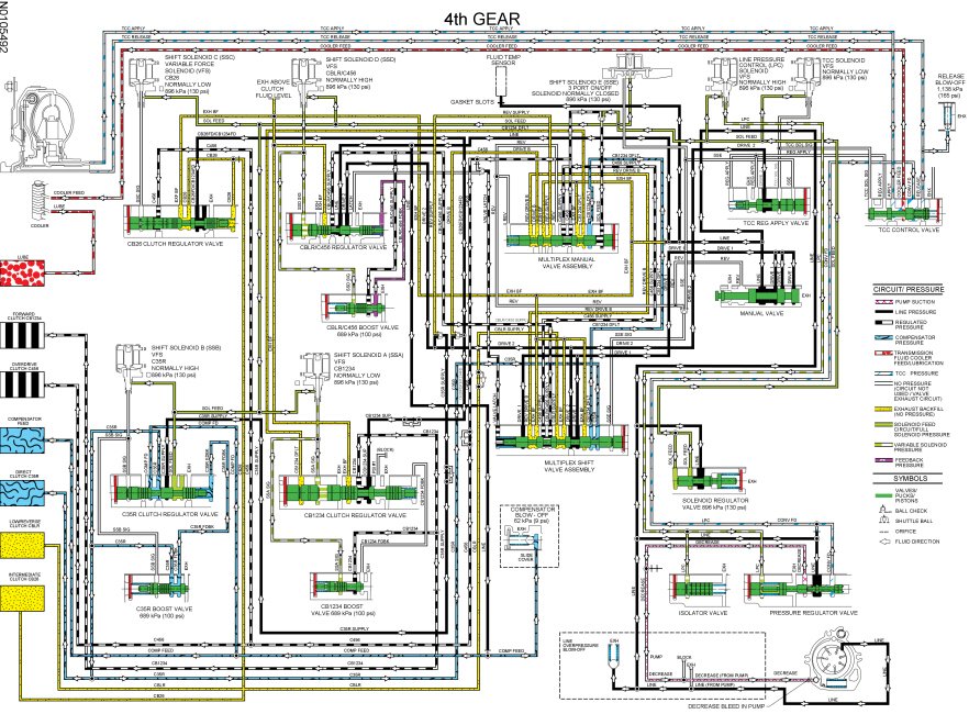 - The C456 hydraulic circuit supplies pressure to the VALVE LATCH circuit to latch the multiplex shift valve and also supplies pressure to the intermediate (2, 6) clutch regulator valve to boost the SSC SIG circuit.