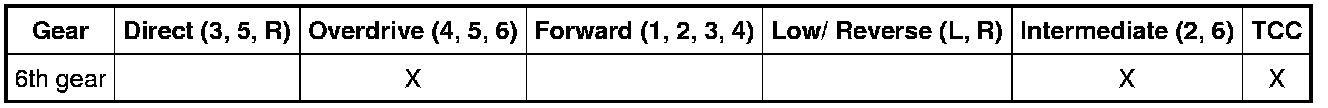 6th Gear TCC Applied Clutch Application Chart