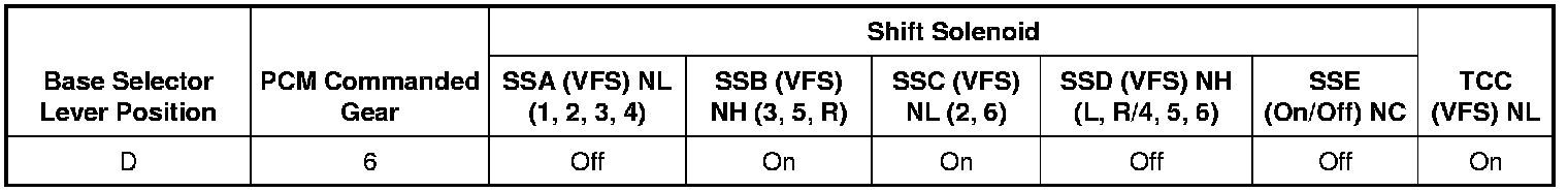 6th Gear TCC Applied Solenoid Operation Chart
