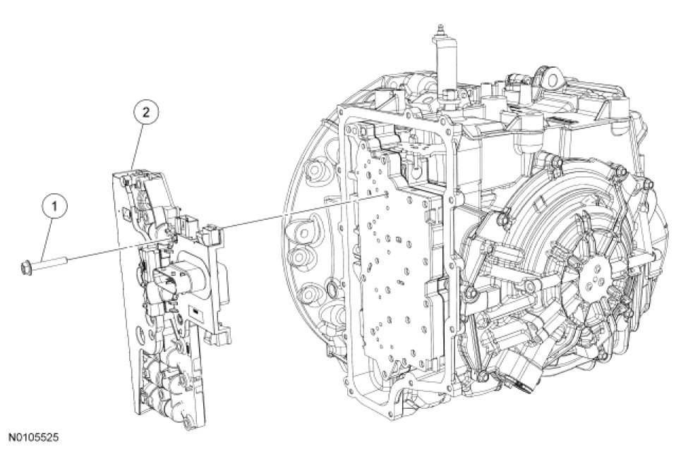 NOTE: The PCM must be updated with a new solenoid body strategy data file and solenoid body identification anytime a new solenoid body is installed. A new solenoid body service tag must be installed over the current solenoid body service tag on top of the transaxle case.