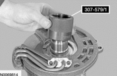 4. Remove the Support Solid Seal Installer 307-579 (includes 307-579/2 and 307-579/3) from the stator support assembly.