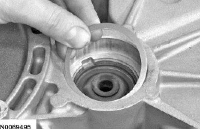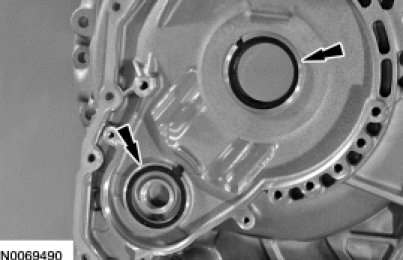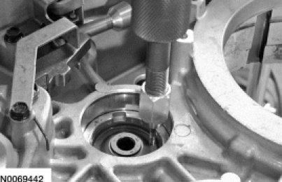 79. Using a suitable tool, remove the halfshaft seal from the torque converter housing.