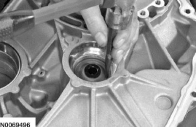 59. NOTICE: If the differential bearing cup is damaged, a new bearing and bearing cup must be installed or excessive noise or transaxle failure may occur.