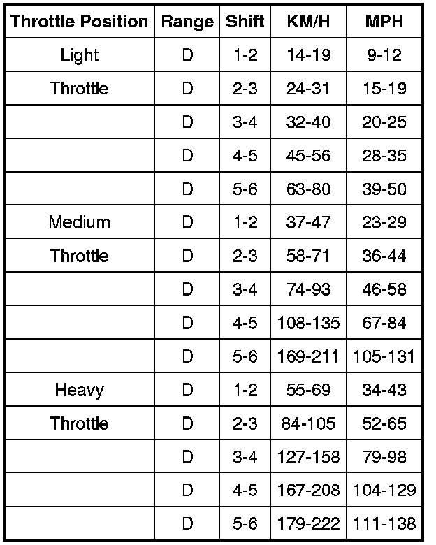 3. NOTE: Shift speed ranges are approximate for all applications. For specific applications (engine, axle ratio and application), refer to the Automatic Transmission Specification Issue available from Ford Customer Service Division.