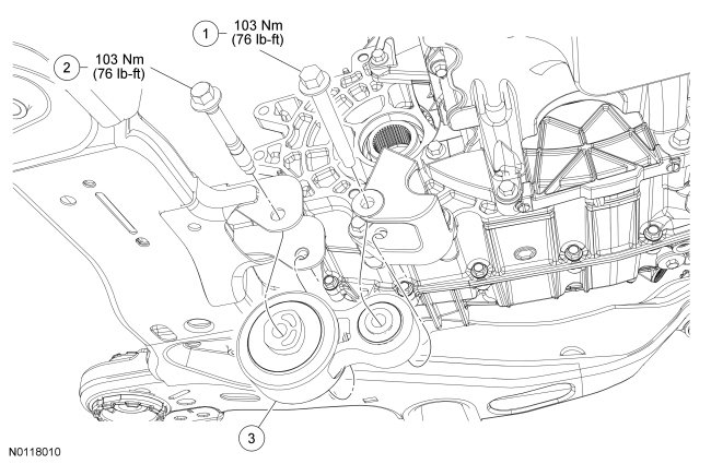 1. With the vehicle in NEUTRAL, position it on a hoist. For additional information, refer to Jacking and Lifting Service and Repair.