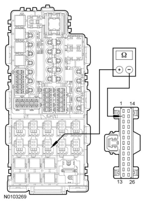 - Measure the resistance between rear window defrost relay socket pin 2, circuit CH122 (WH/OG) and HVAC module C228A-2 , circuit CH122 (WH/OG), harness side.