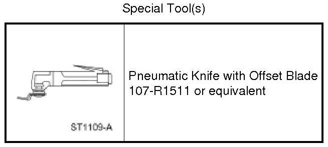 NOTE: Lubricate the existing urethane adhesive with water to aid the Pneumatic Knife with Offset Blade while cutting.