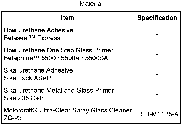 8. NOTE: Be sure to use the same brand and cure-rate products for the urethane adhesive and glass primer. Do not mix different brands of urethane adhesive and glass primer. Refer to the Material Chart in this procedure.