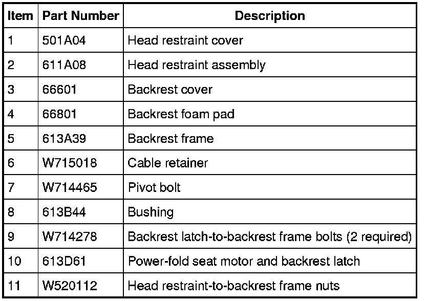 1. Remove the affected seat backrest. For additional information, refer to Seat Backrest - Third Row, Power Seat Backrest - Third Row, Power.