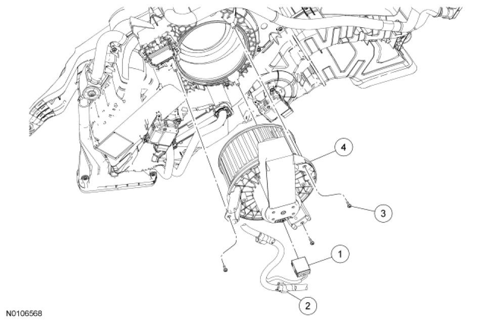 3. Detach the 2 auxiliary wire harness clips from the auxiliary heater core and evaporator core housing and position the wire harness away from the blower motor.