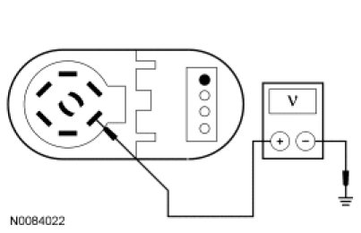 - Measure the voltage between the trailer tow C4099-5, circuit CAT14 (OG), harness side and ground.