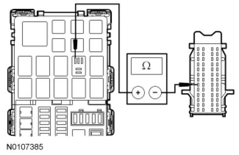 - Measure the resistance between the trailer battery charge relay pin 2, circuit CBP33 (WH/BN), BJB face side and the SJB C2280b-6, circuit CBP33 (WH/BN), harness side.