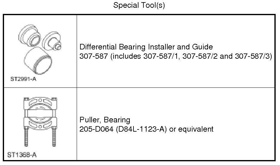 2. Using the Differential Bearing Installer and Guide 307-587 (307-587/2 and 307-587/3) and a press, install new transfer shaft bearings on the transfer shaft assembly.