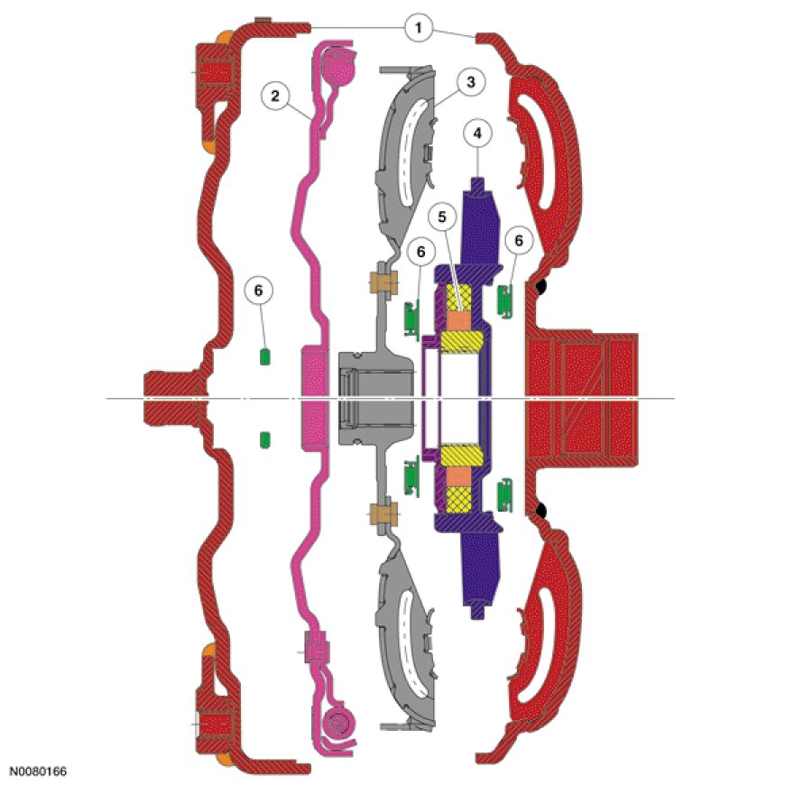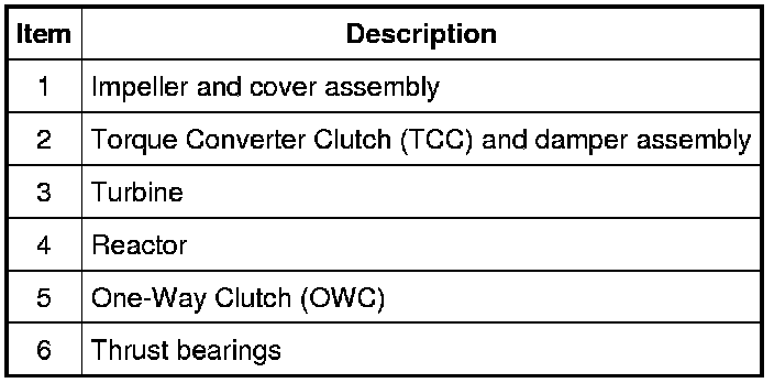 The Torque Converter Clutch (TCC) connects the torque converter housing to the damper when the TCC is applied.