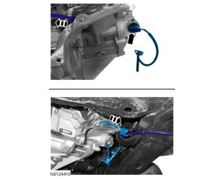 1. NOTE: Use a plastic tie strap big enough so that the locking end can not fit through the TSS sensor electrical connector and long enough so that it can be fed through the transaxle case to pull the TSS electrical connector through the transaxle case.