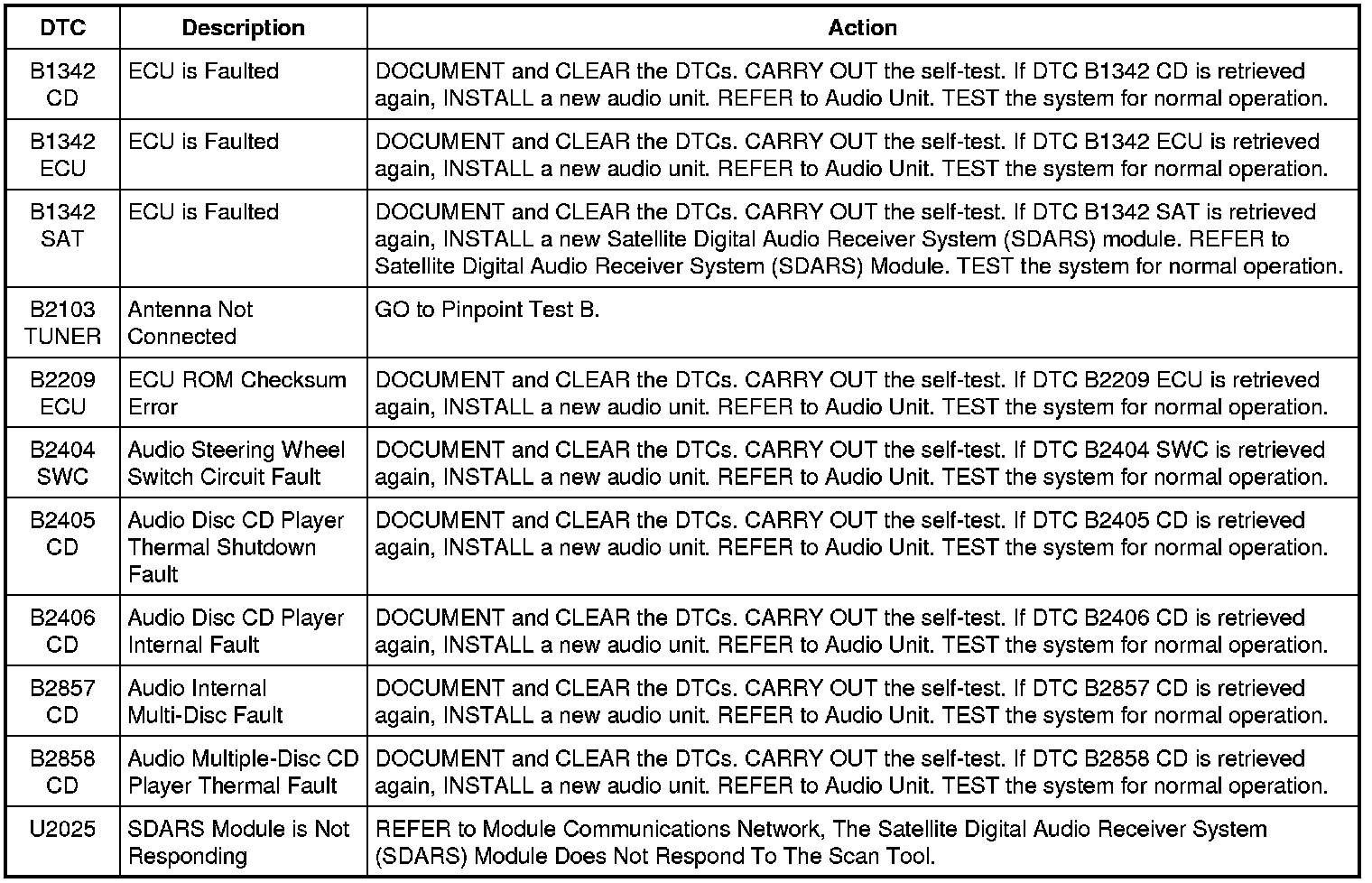 NOTE: The audio unit DTCs are only retrieved by using the speaker walk-around test.