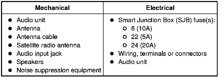 5. To exit the self-diagnostic mode, turn the key to OFF or turn the audio unit off.