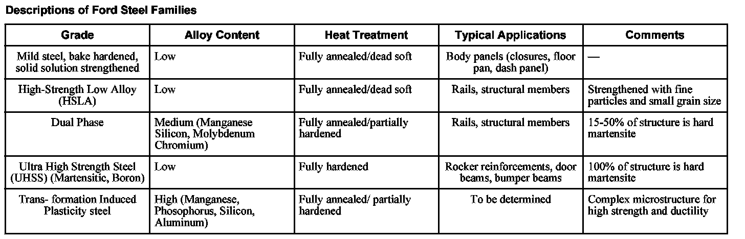 Descriptions Of Ford Steel Families:
