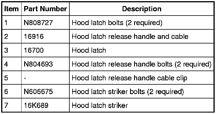 Hood Latch and Components - Exploded View