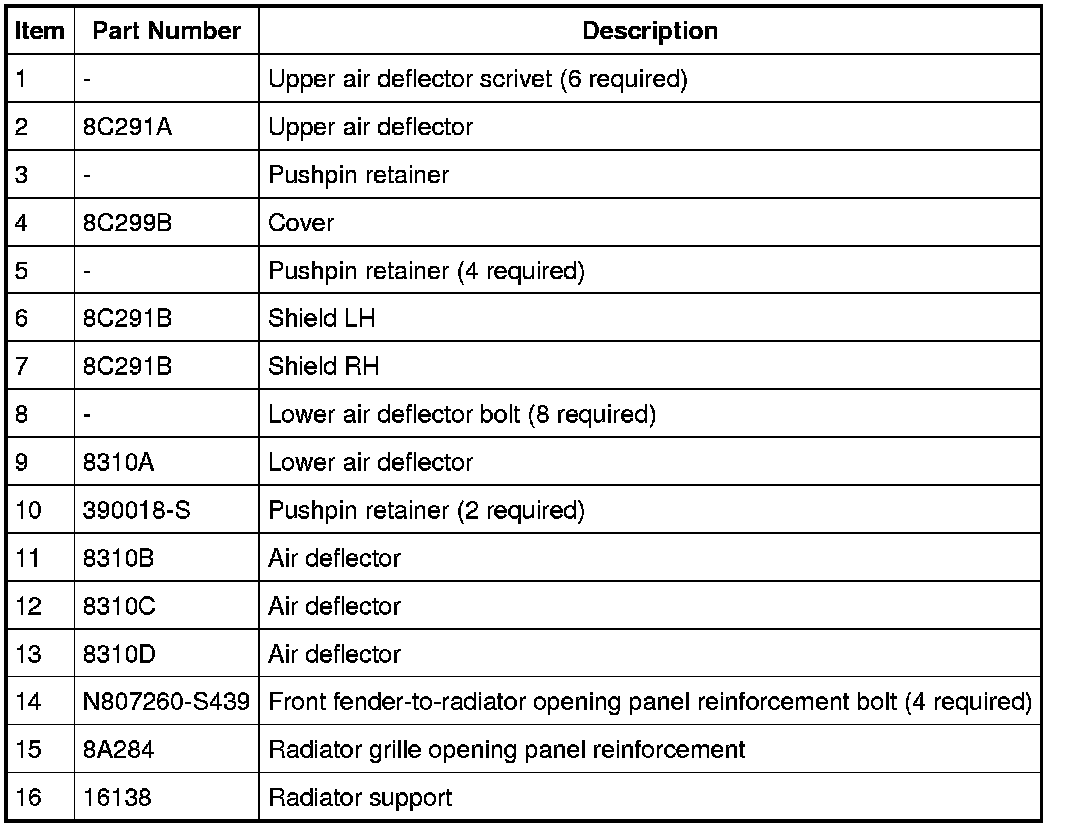 5. Remove the auxiliary power steering cooler-to-radiator grille opening panel reinforcement bolt.