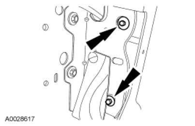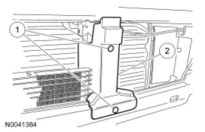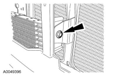 Remove the 2 radiator-to-radiator grille opening panel reinforcement bolts.