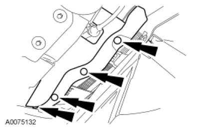 Remove the front fender-to-grille opening panel reinforcement bolts.