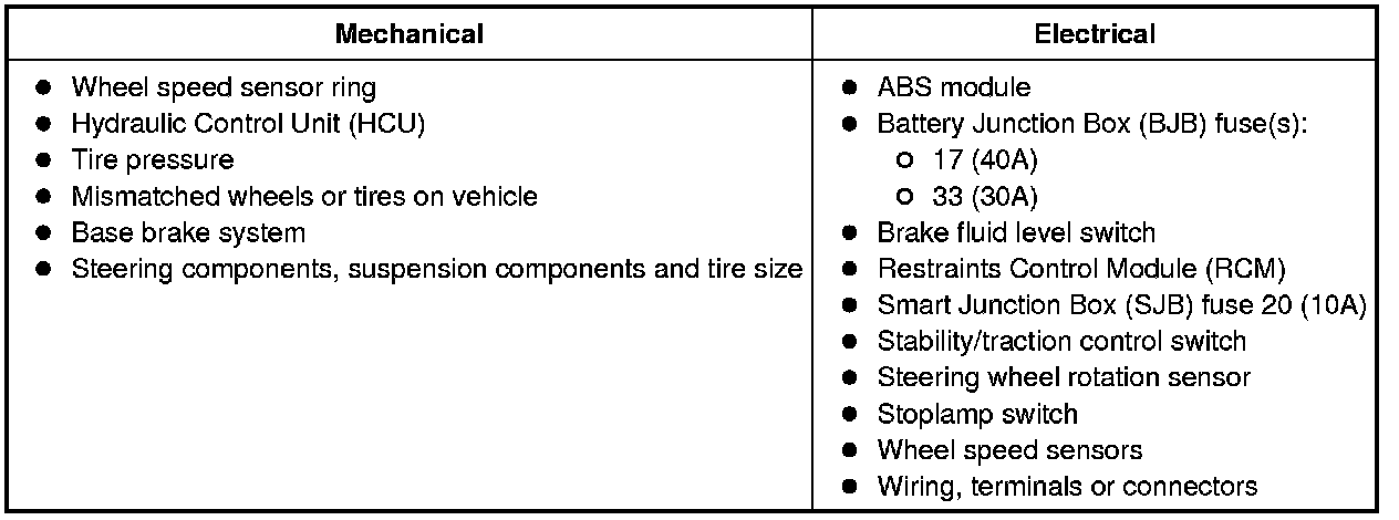 11. If the DTCs retrieved are related to the concern, go to ABS Module DTC Chart Diagnostic Trouble Code Tests and Associated Procedures. For all other DTCs, refer to the Master DTC Chart in Multifunction Electronic Modules Testing and Inspection.