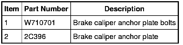 4. Remove the 2 brake caliper anchor plate bolts and the brake caliper anchor plate.