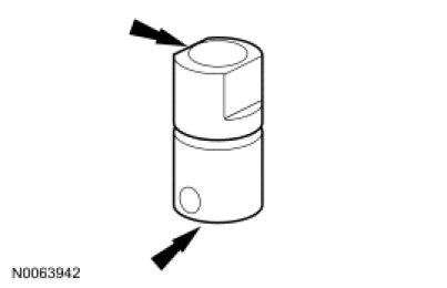 1. Inspect the valve tappet for damage, especially in the indicated areas. If any damage is evident, inspect the camshaft lobes and valves for damage. Replace components as necessary.