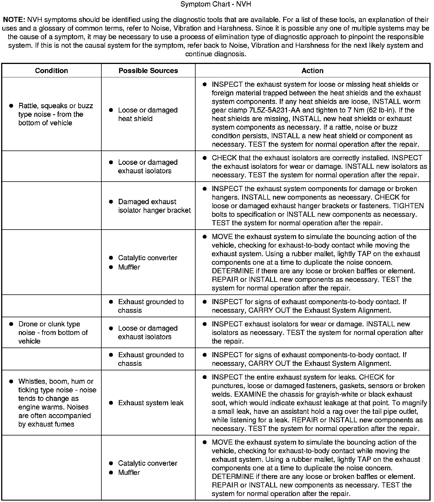 Symptom Chart - NVH