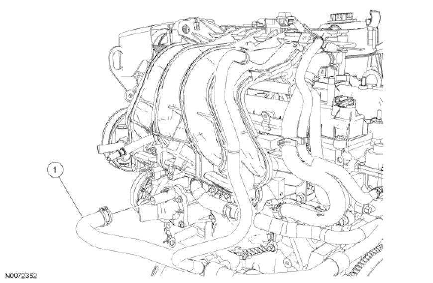 15. Disconnect the hose from the intake manifold heated PCV fitting and remove the hose from the vehicle.
