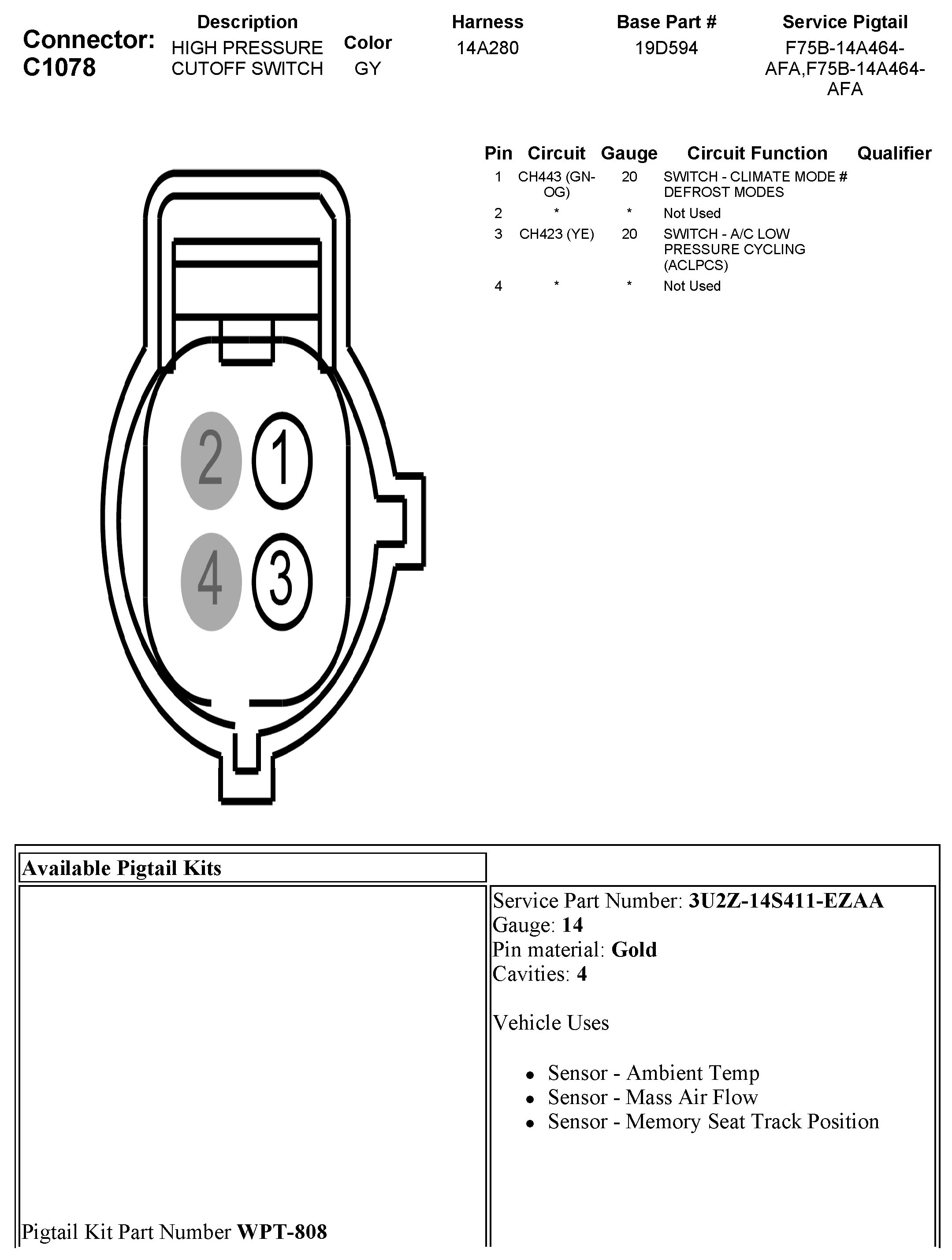 High Pressure Sensor / Switch: Diagrams