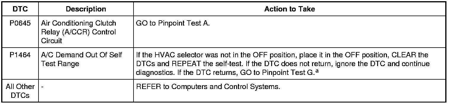 a PCM DTC P1464 will set if the function selector is in PANEL with A/C button pressed, DEFROST or MAX A/C mode when the on-demand self test is being run.