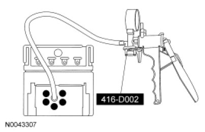 - Connect the Vacuum Pump to each vacuum line of the jumper vacuum harness, excluding the black vacuum source line, and apply 51 kPa (15 in-Hg) of vacuum.