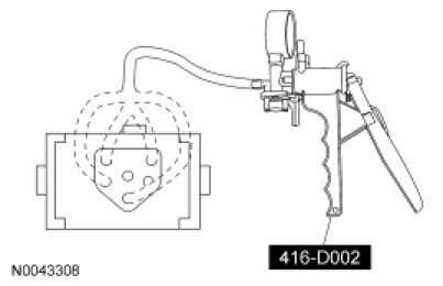 - NOTE: The A/C vacuum check valve is internal to the vacuum reservoir tank and cannot be serviced separately. This step confirms correct operation of the A/C vacuum check valve.