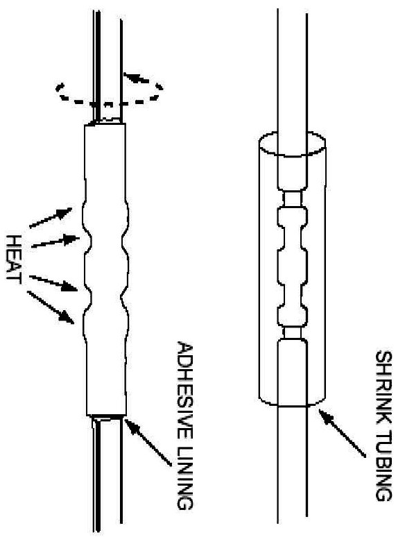 8. Use shielded heat gun to heat the repaired area until adhesive flows Out of both ends of heat shrink tubing.
