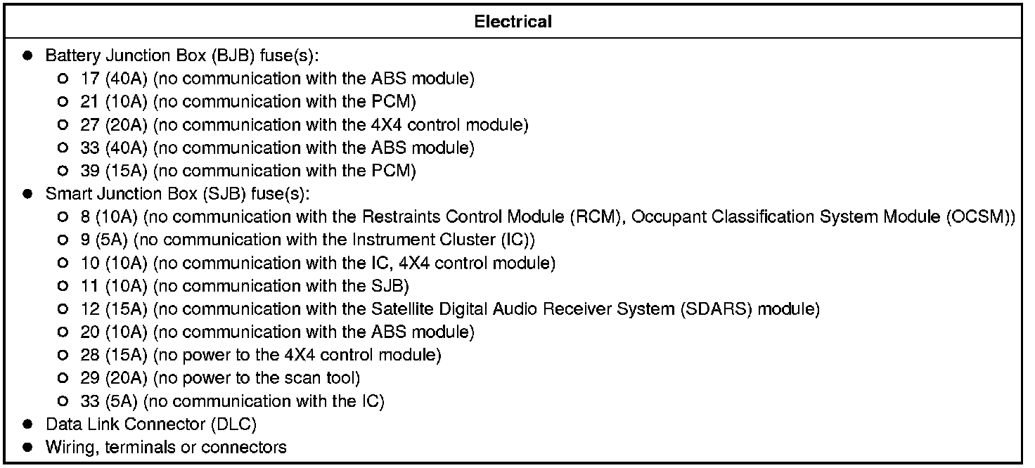 - If a module fails to communication during the network test, GO to Symptom Chart. Symptom Related Diagnostic Procedures