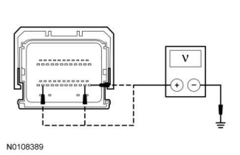 - Measure the voltage between the PCM, harness side and ground as follows:
