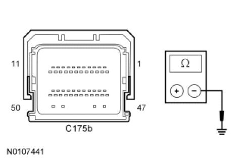 - Measure the resistance between the PCM C175b-11, circuit VDB04 (WH/BU), harness side and the DLC C251-6, circuit VDB04 (WH/BU), harness side.