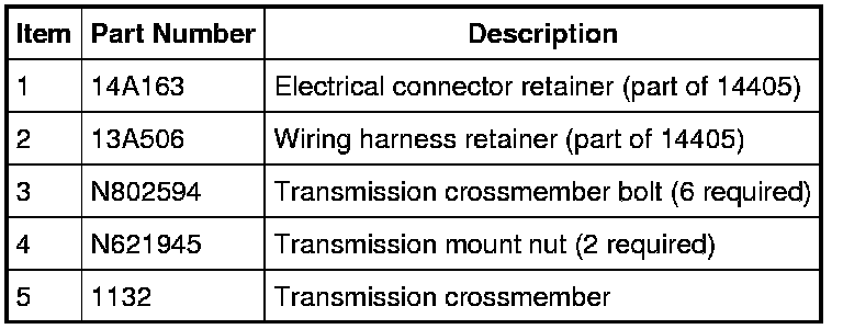 8. Detach the transmission electrical connector and wiring harness retainers from the crossmember. Remove the 2 transmission mount nuts and the crossmember.