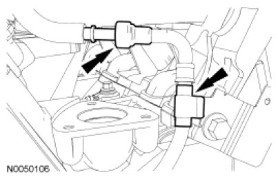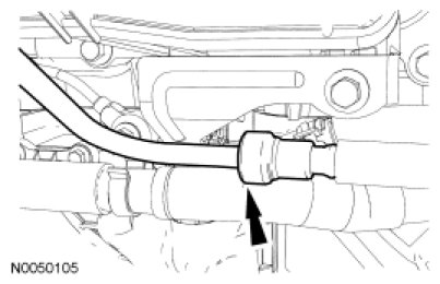 5. Disconnect the front fuel tank vapor tube-to-Evaporative Emission (EVAP) canister purge valve quick connect coupling. For additional information, refer to Fuel System - General Information Quick Connect Coupling.