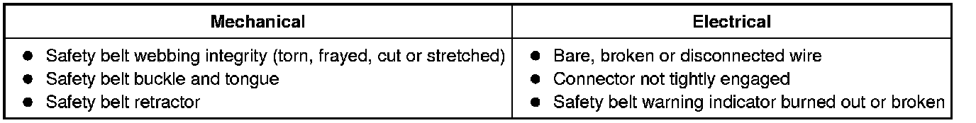3. If the inspection reveals an obvious concern(s) that can be readily identified, service as required. With the exception of removing a twist from the safety belt webbing, do not attempt to repair a component of the safety belt system; new components must be installed.
