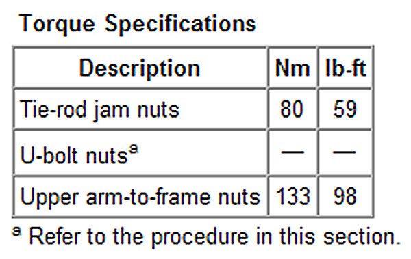 Torque Specifications: