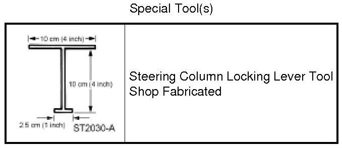 1. Using a shop fabricated tool, pry up on the steering column locking levers.