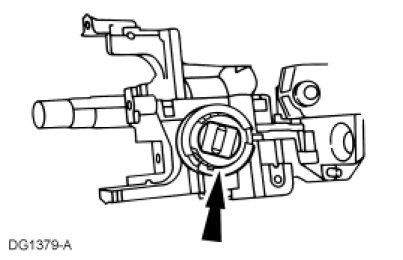 6. Position the steering column shaft in the ignition lock cylinder housing.