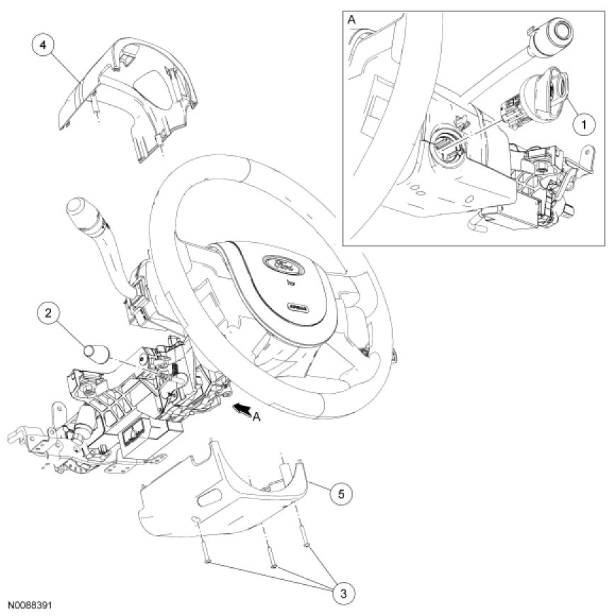 1. Remove the ignition lock cylinder. For additional information, refer to Handles, Locks, Latches and Entry Systems Service and Repair.