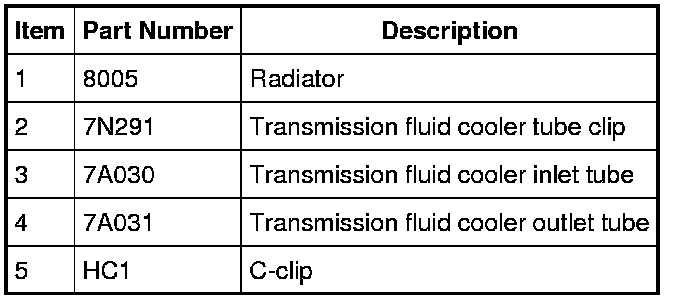 This vehicle with an automatic transmission is equipped with a transmission fluid cooler integral to the radiator and cannot be repaired separately. The integral transmission fluid cooler transfers heat from the transmission fluid to the engine coolant. The auxiliary transmission fluid cooler transfers heat from the transmission fluid to outside air.