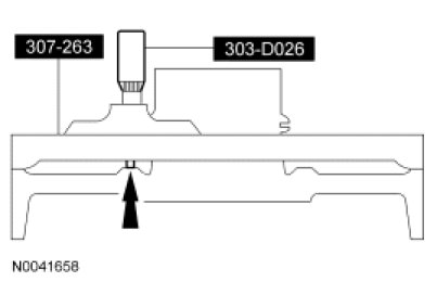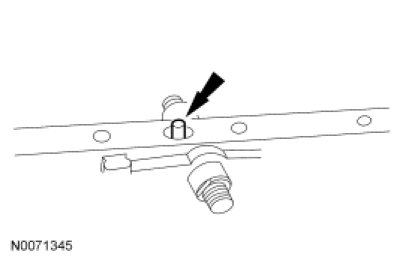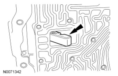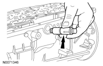 11. NOTICE: Use care not to damage the transmission fluid pan rail surface when installing the retaining pin.