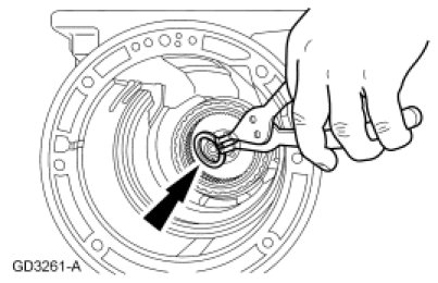 Install the low/reverse retaining ring into the low/reverse brake drum groove.
